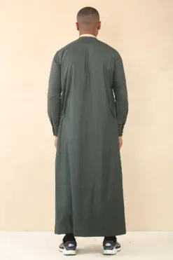 Crafted from high-quality materials for lasting comfort and durability. The smooth, lightweight feel of this green men’s thobe makes it ideal for daily wear or special occasions alike.