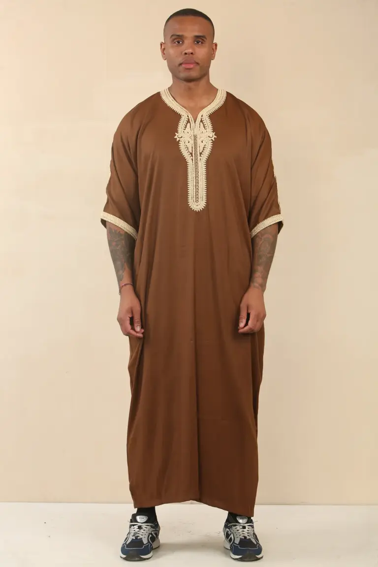 HM60 – Men’s Brown Moroccan Thobe Gold Embroidery Gandoura