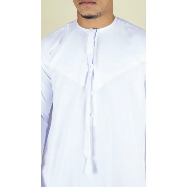 TT-001 Men’s White Thobe Emirati Islamic Clothing String Tassel