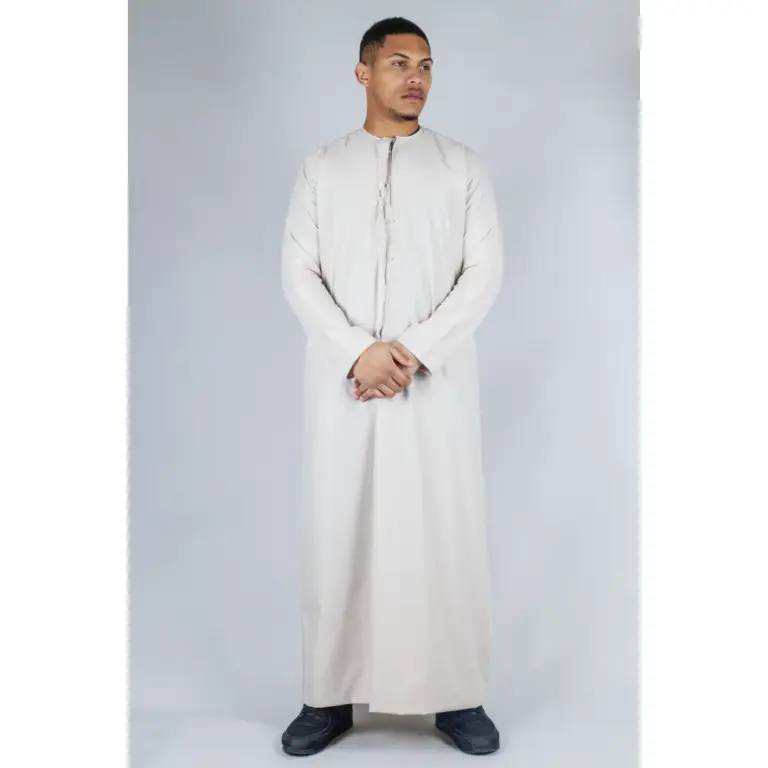 TT-001 Men’s Beige Thobe Emirati Islamic Clothing String Tassel