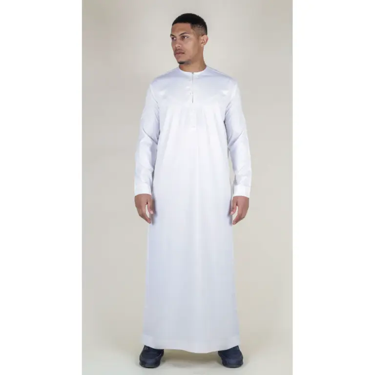 TT-002 Men’s White Satin Emirati Thobe Islamic Clothing