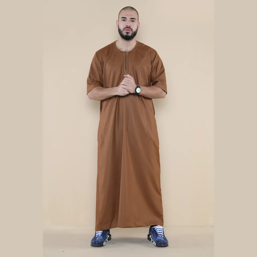 107 – Men’s Brown Zipped Half Sleeve Islamic Thobe
