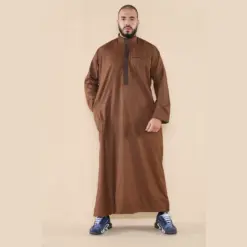 •Classic Design: An ankle-length, long-sleeve thobe that embodies traditional Islamic menswear, offering modesty and elegance.