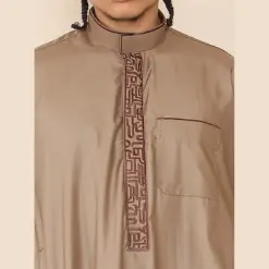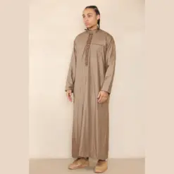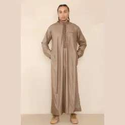 103 – Men’s Light Brown Muslim Islam Eid Nehru Collar Thobe
