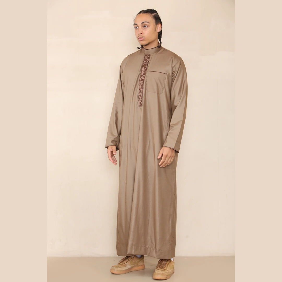 •Classic Design: An ankle-length, long-sleeve thobe that embodies traditional Islamic menswear, offering modesty and elegance.