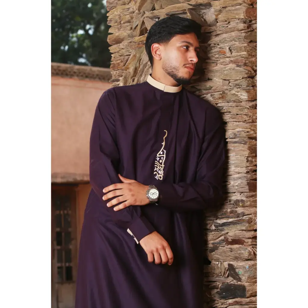 103 – Men’s Purple Nehru Stand Collar Embroidery Thobe