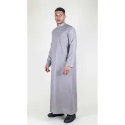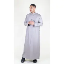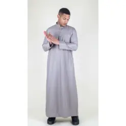 •Timeless Design: Experience the essence of Islamic menswear with a distinguished thobe design that exudes simplicity and style, suitable for any occasion.