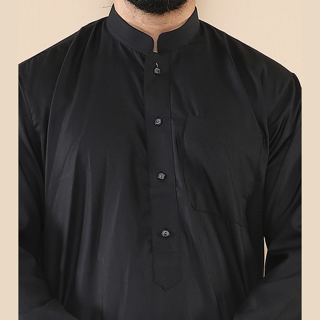 104 – Men’s Black Muslim Nehru Collar Eid Thobe