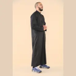•Timeless Design: Experience the essence of Islamic menswear with a distinguished thobe design that exudes simplicity and style, suitable for any occasion.