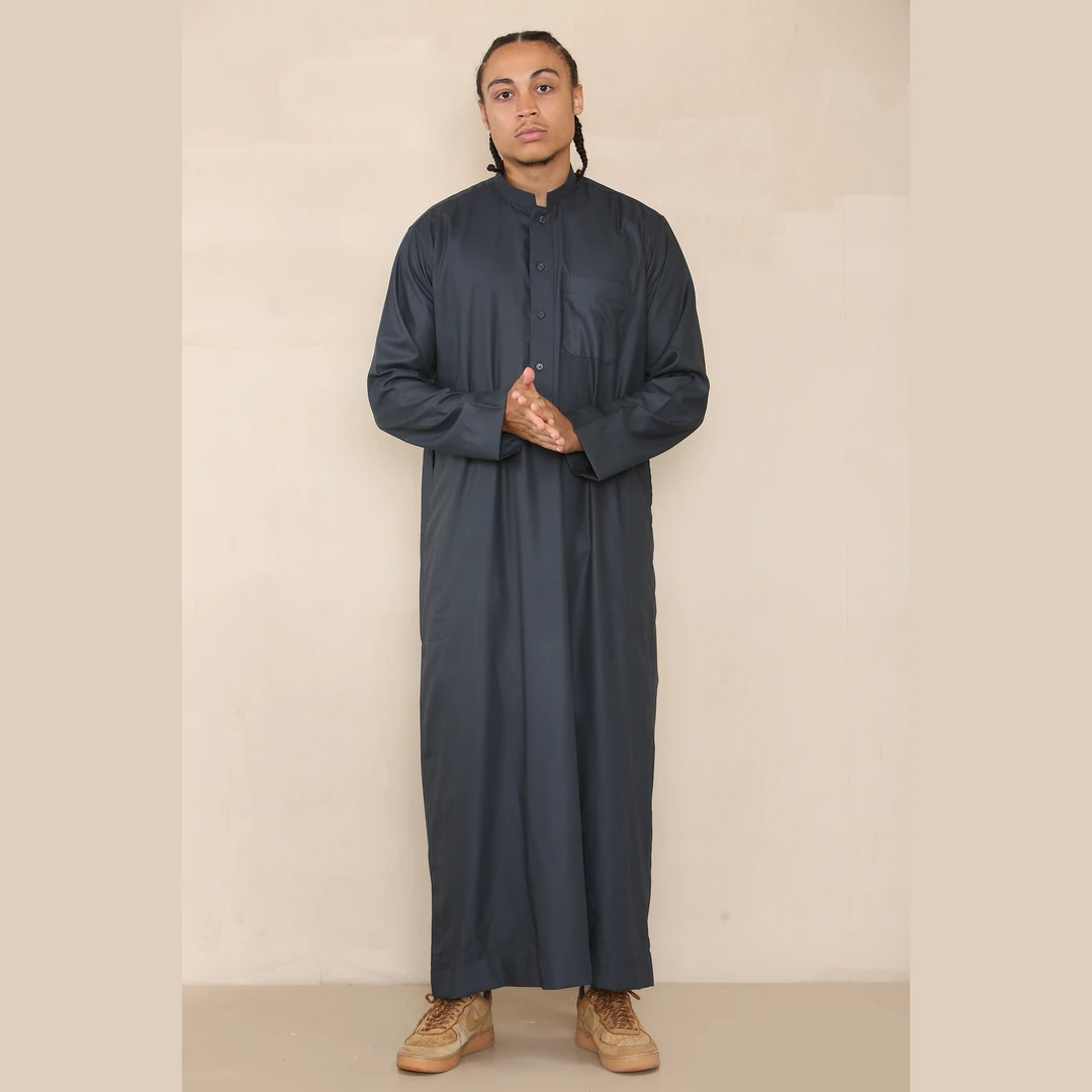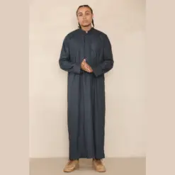 •Timeless Design: Experience the essence of Islamic menswear with a distinguished thobe design that exudes simplicity and style, suitable for any occasion.