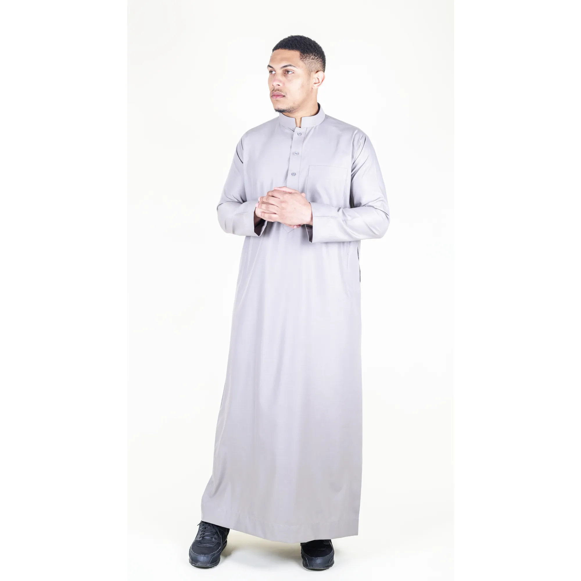 •Timeless Design: Experience the essence of Islamic menswear with a distinguished thobe design that exudes simplicity and style, suitable for any occasion.