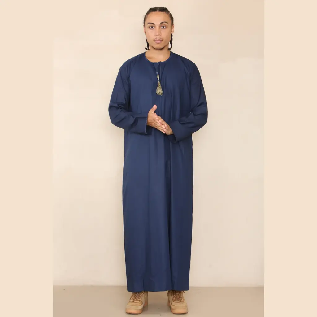 105 – Men’s Navy Gold Omani Eid Tassel Thobe Jubba