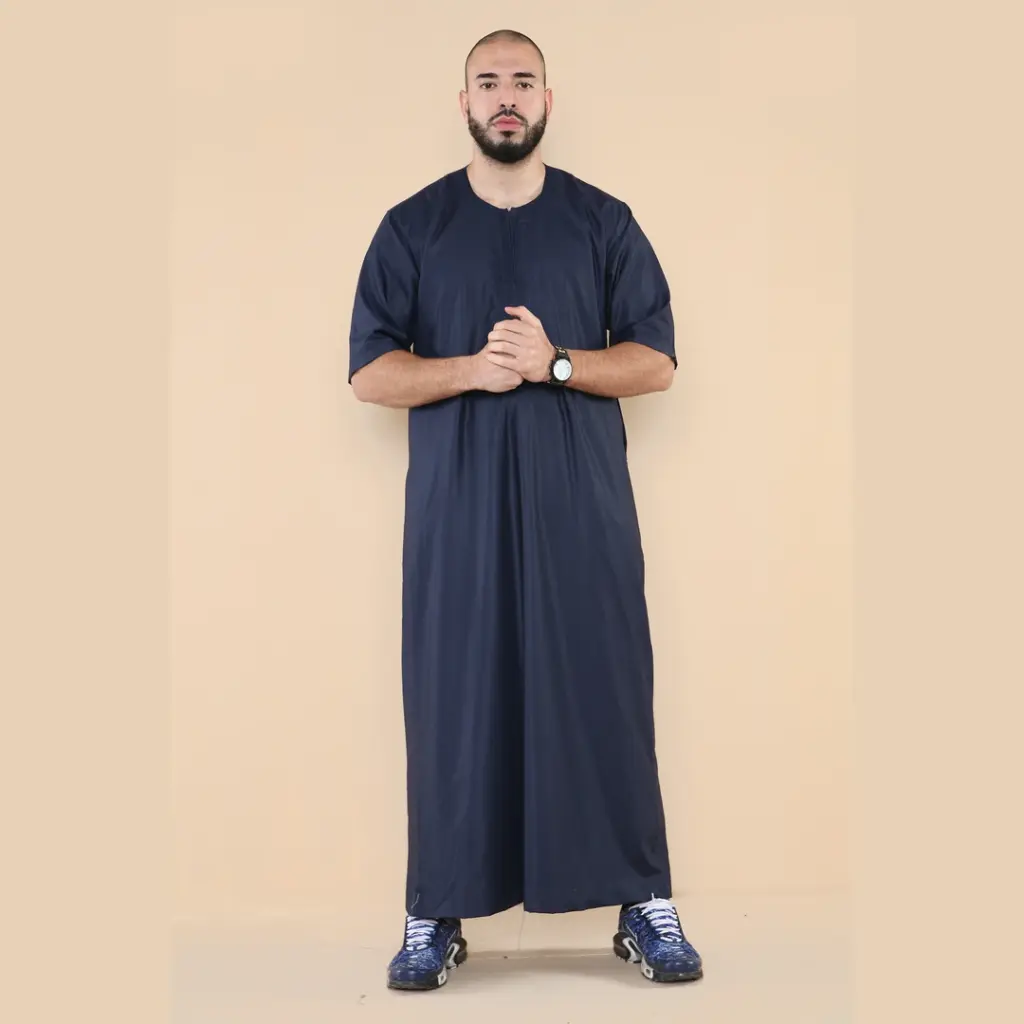 107 – Men’s Navy Zipped Half Sleeve Islamic Thobe