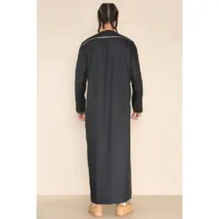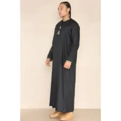 Design: This classic ankle-length robe features long sleeves and a Nehru collar, embodying the traditional, modest style aligned with sunnah principles. Finished with a sleek, modern touch, this thobe is an ideal addition to any wardrobe.