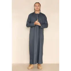 Design: This classic ankle-length robe features long sleeves and a Nehru collar, embodying the traditional, modest style aligned with sunnah principles. Finished with a sleek, modern touch, this thobe is an ideal addition to any wardrobe.