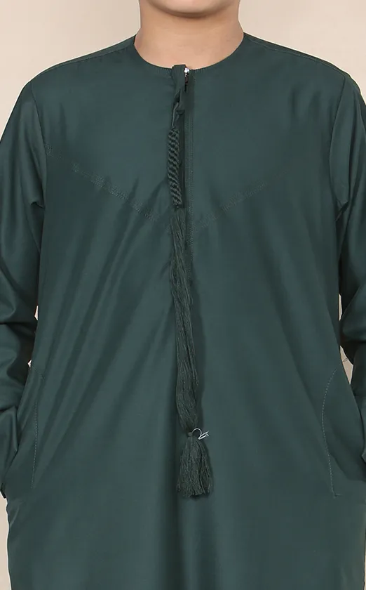 TT-001 Boy’s Olive Thobe Emirati Islamic Clothing String Tassel