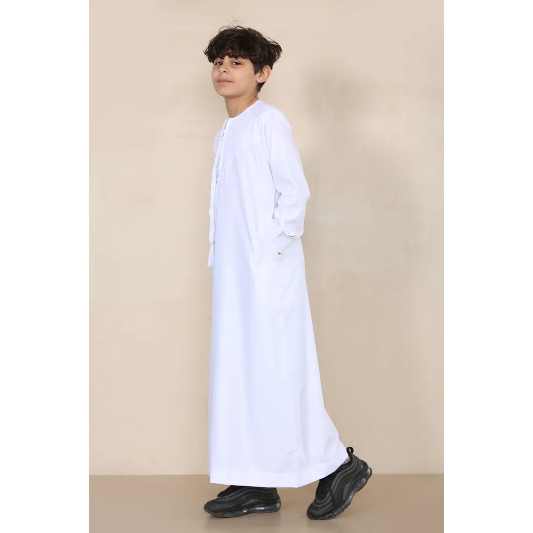 TT-001 Boy’s White Thobe Emirati Islamic Clothing String Tassel