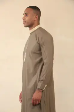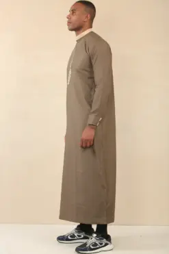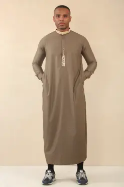 • Elegant Design: Showcasing a refined brown colour complemented by intricate embroidery, this Thobe brings a distinctive touch to both formal events and everyday wear.