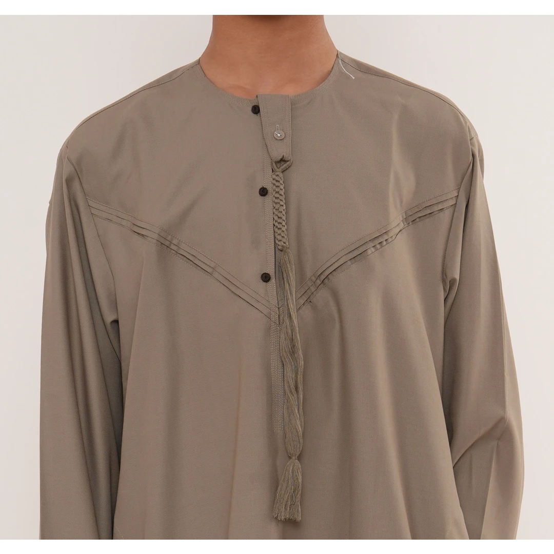 • Authentic Cultural Design: Features traditional Emirati and Omani style details, including bobble buttons and string tassels, reflecting genuine Islamic attire