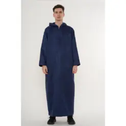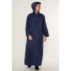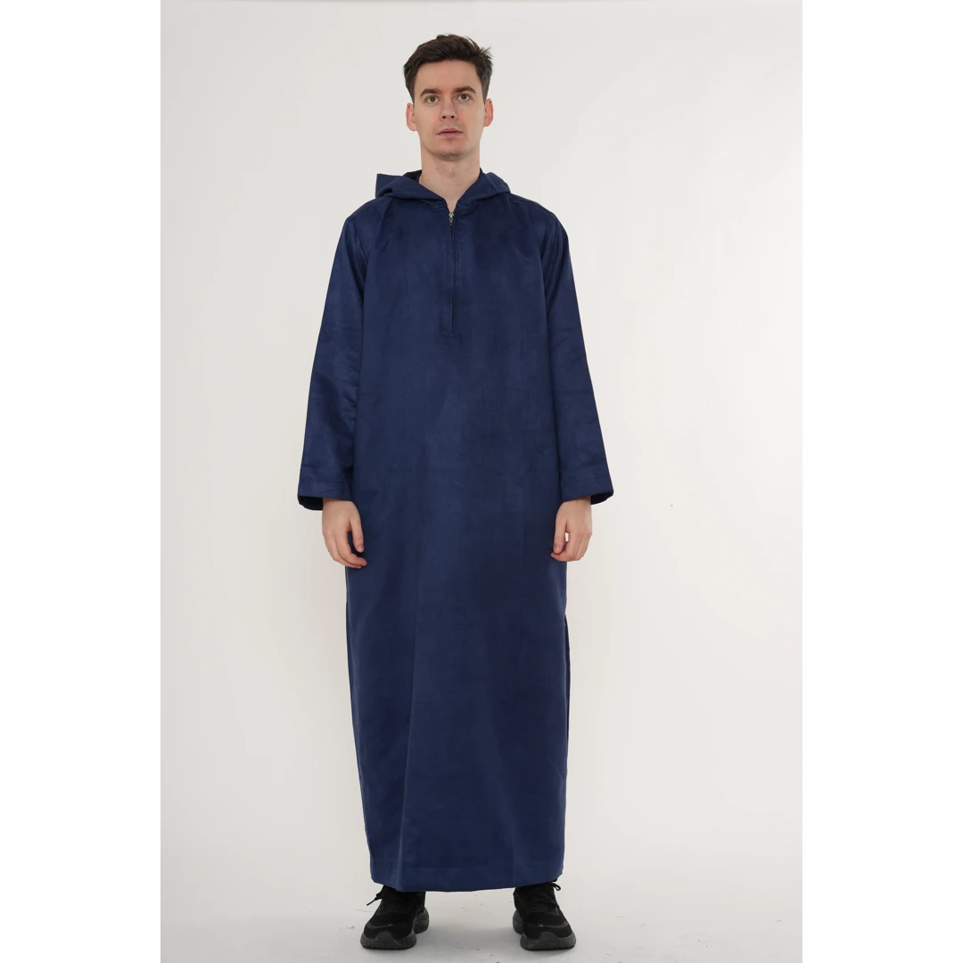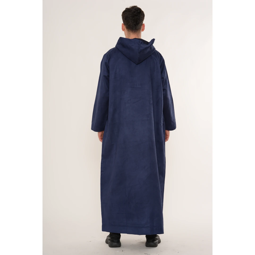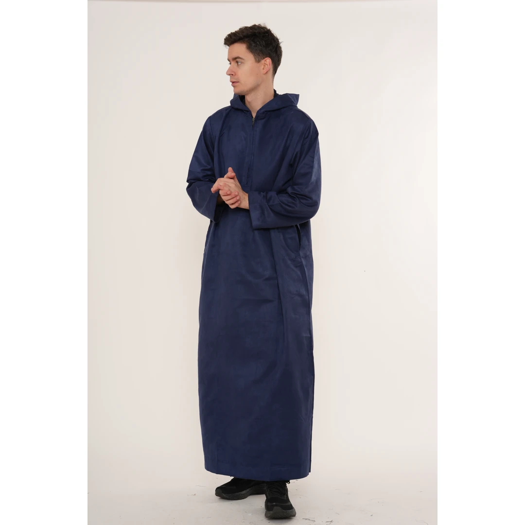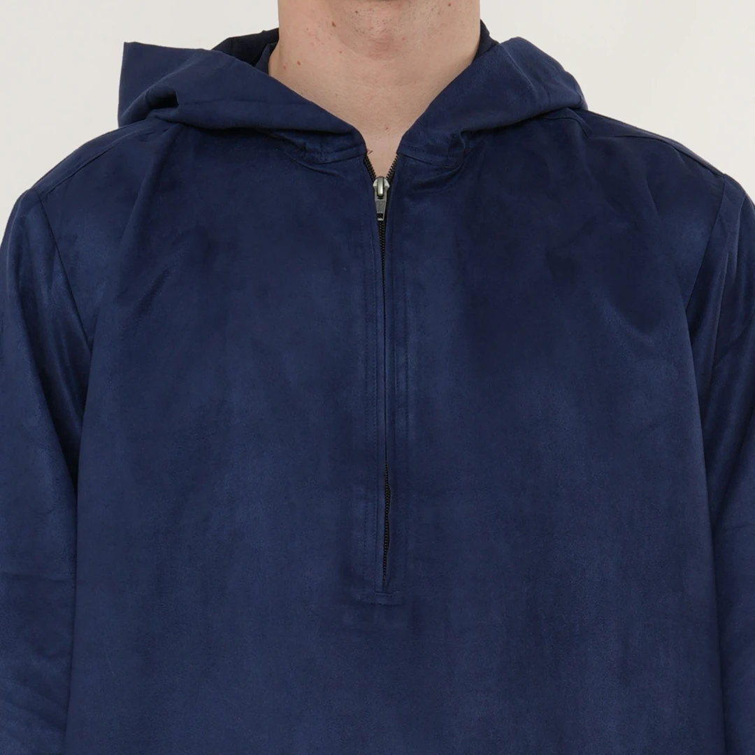 HM12 Navy Hooded Suede Thobe Emirati Omani Zipped Jubba