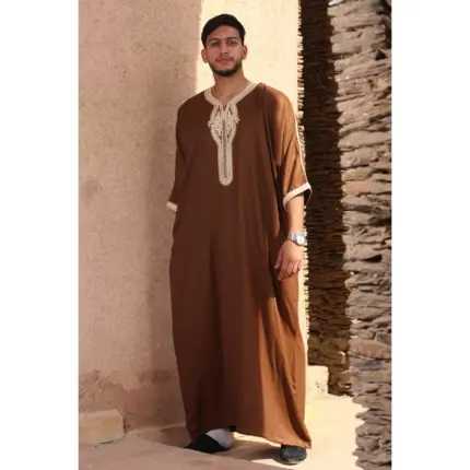 HM60 – Men’s Brown Moroccan Thobe Gold Embroidery Gandoura