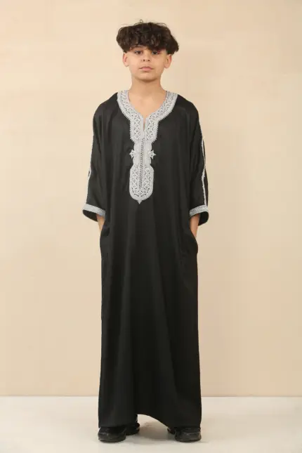 HM62 – Men’s Black Moroccan Thobe Silver Embroidery Gandoura