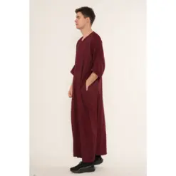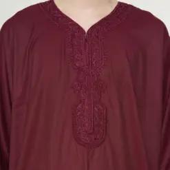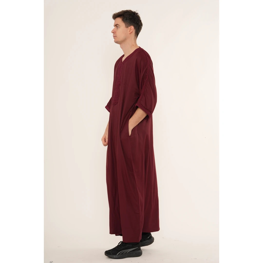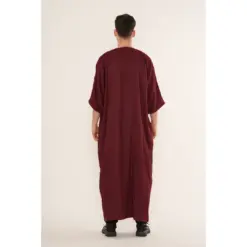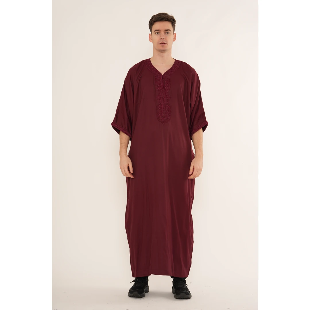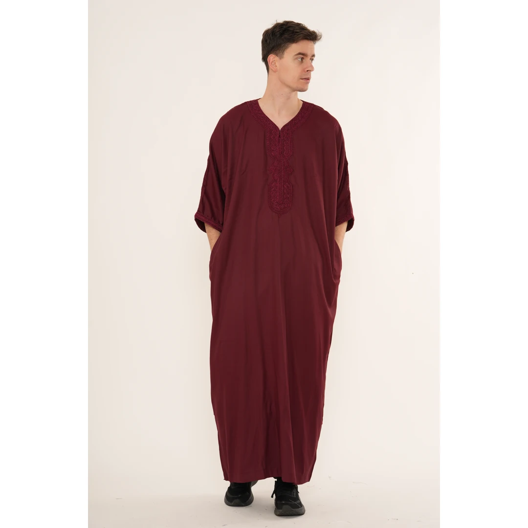 HM62 Wine Moroccan Thobe Half Sleeve Gandoura Embroidery