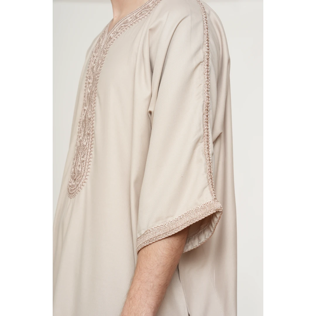 HM66 Salmon Moroccan Thobe Half Sleeve Gandoura Matching
