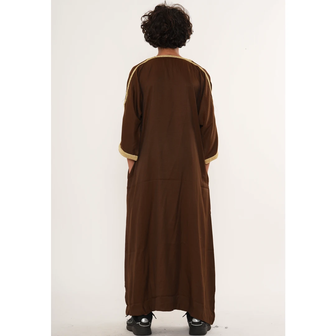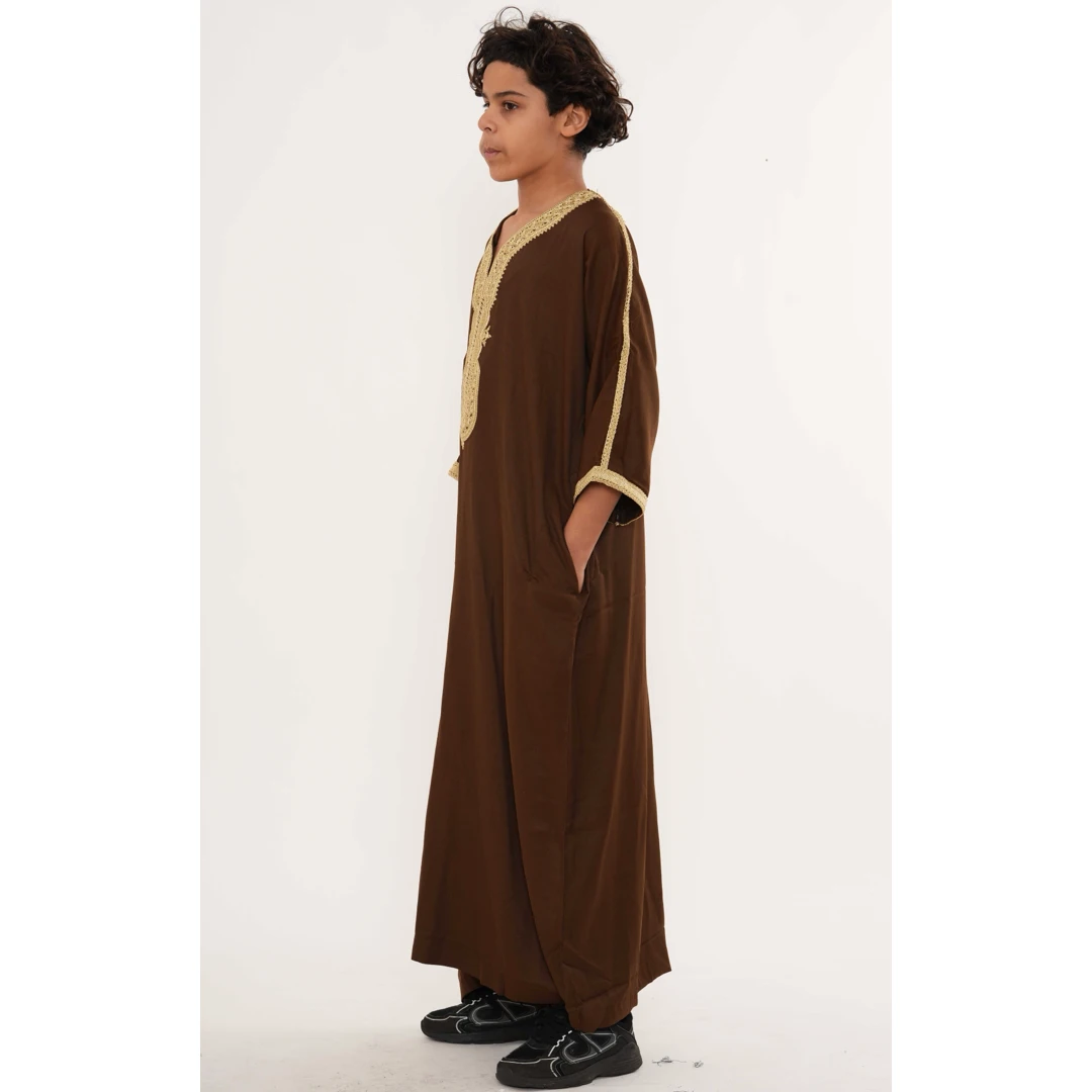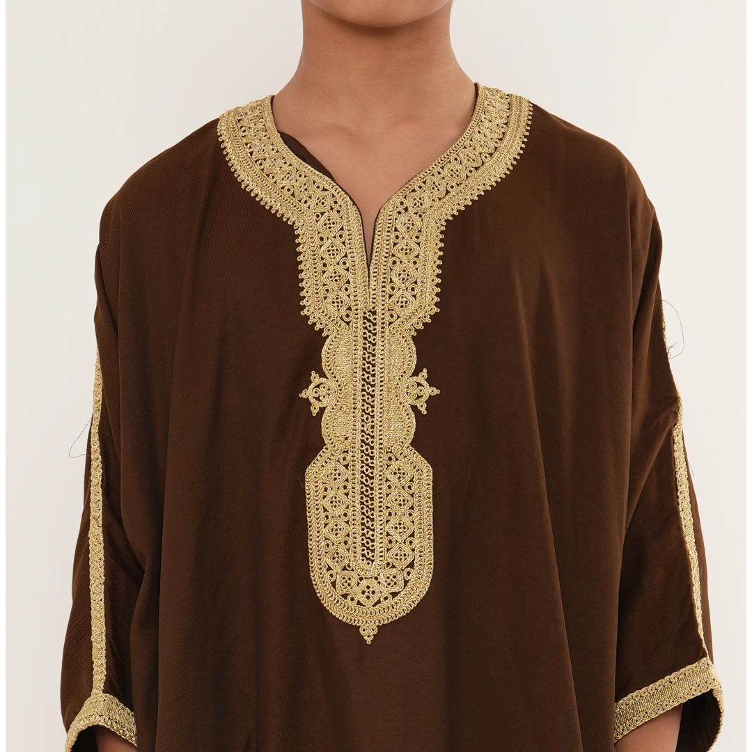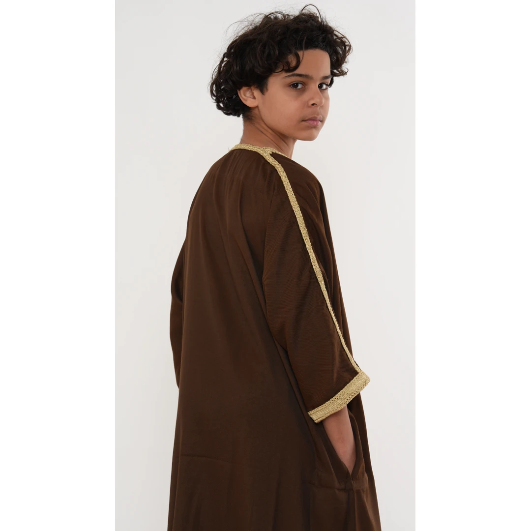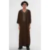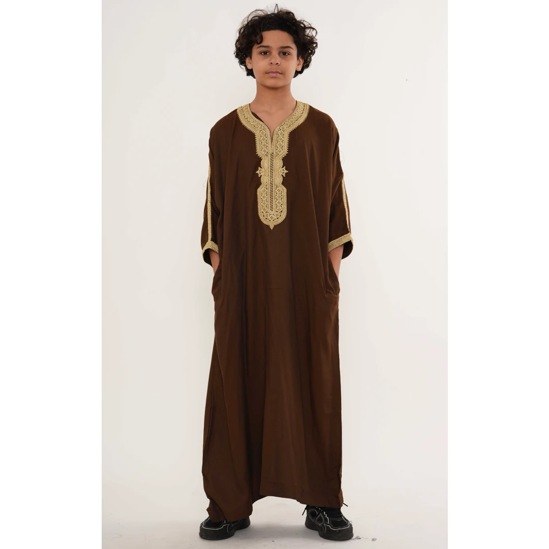 HM67 Brown Beige Moroccan Boys Thobe Embroidered Kaftan
