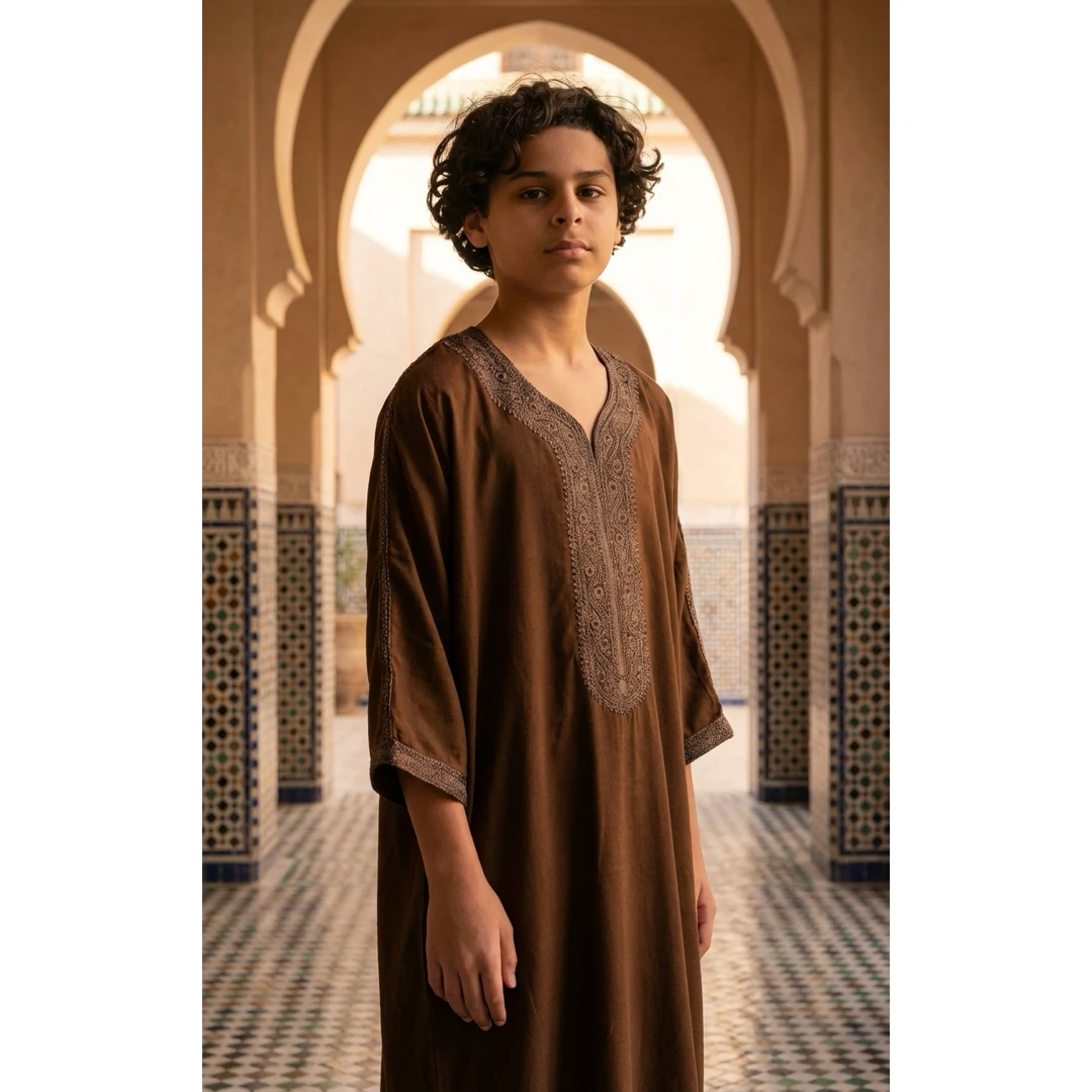 • Authentic Moroccan style: Traditional Gandoura kaftan design inspired by classic Moroccan wear, offering a respectful and culturally rooted look for young boys
