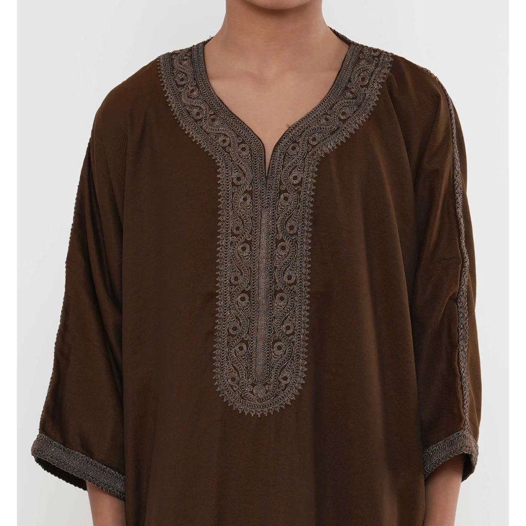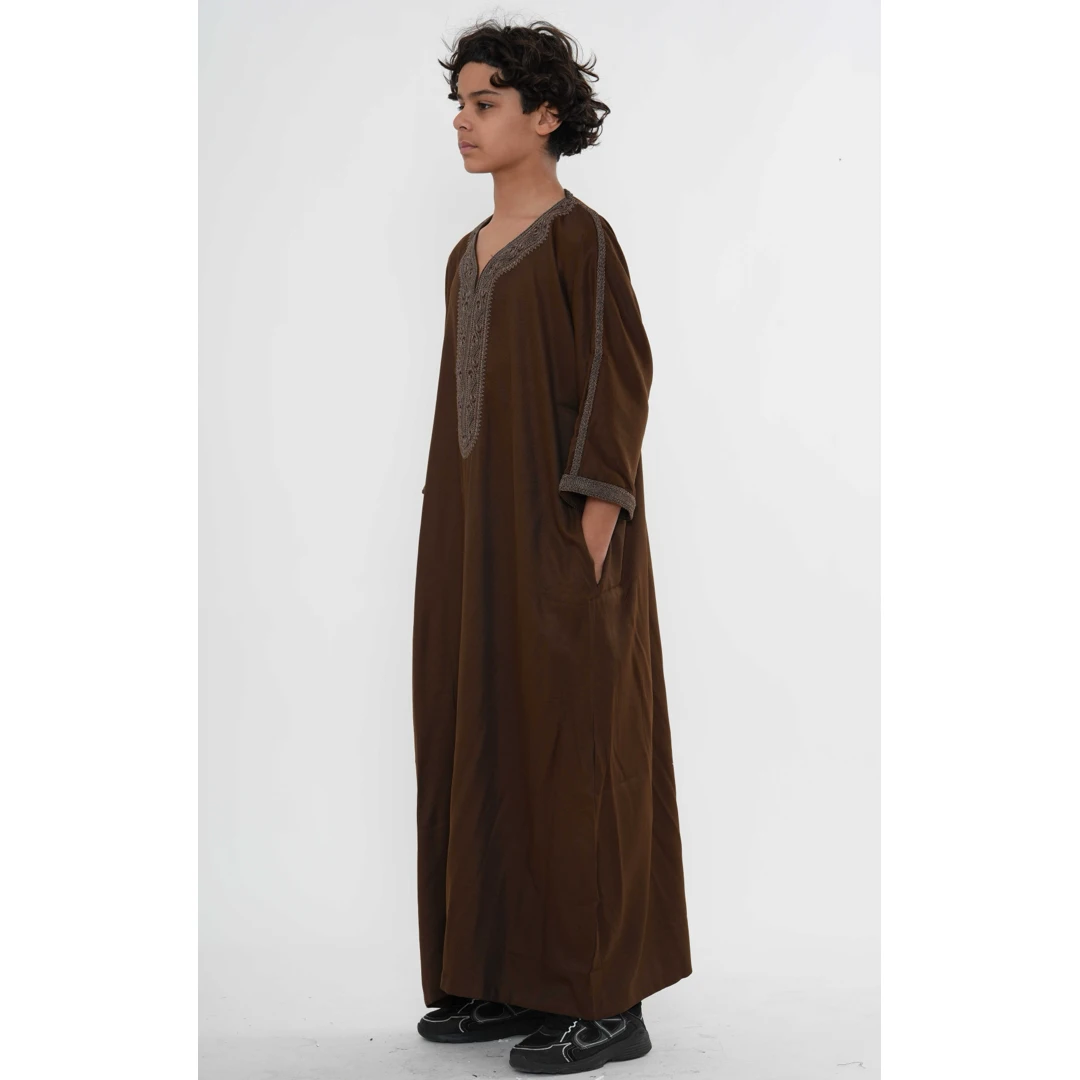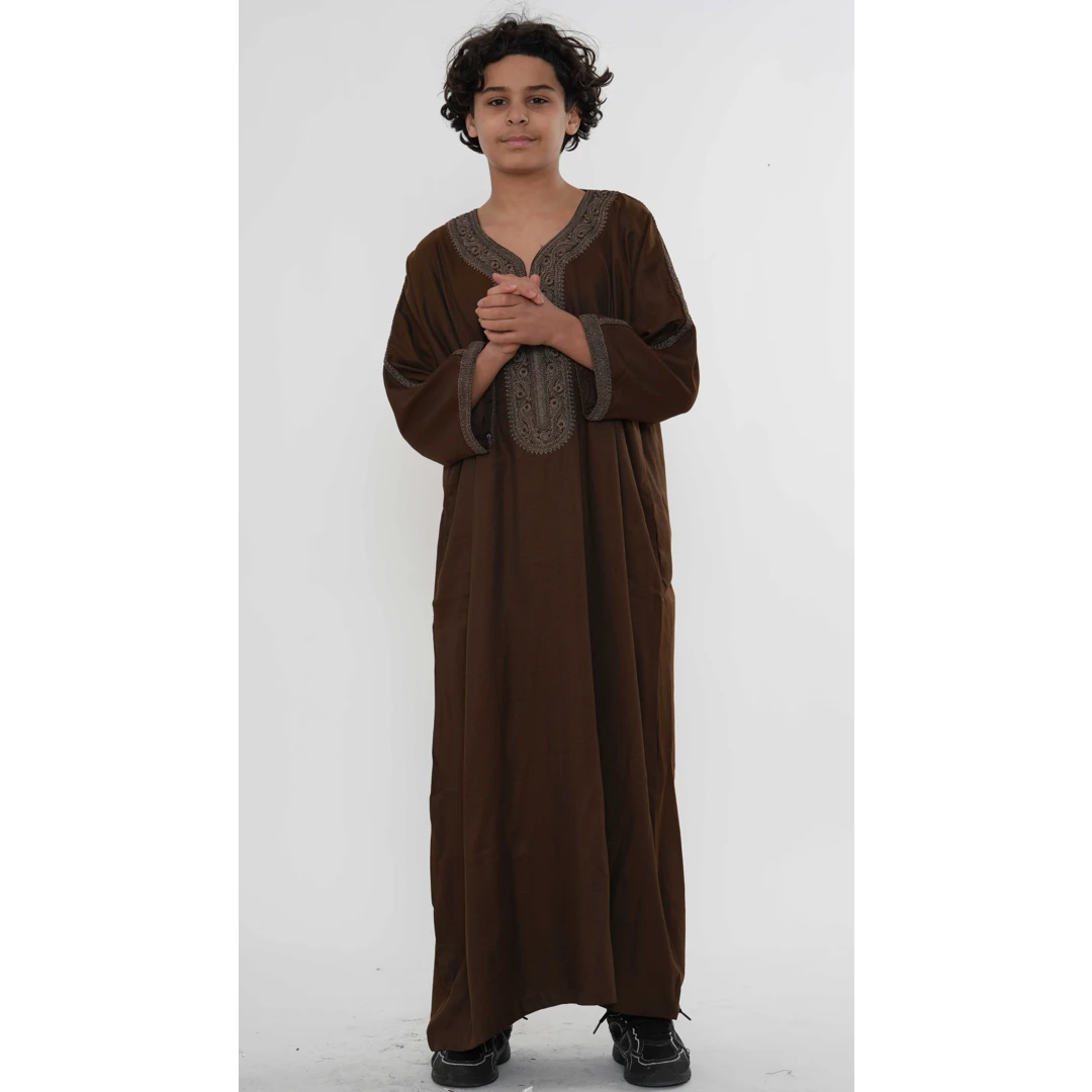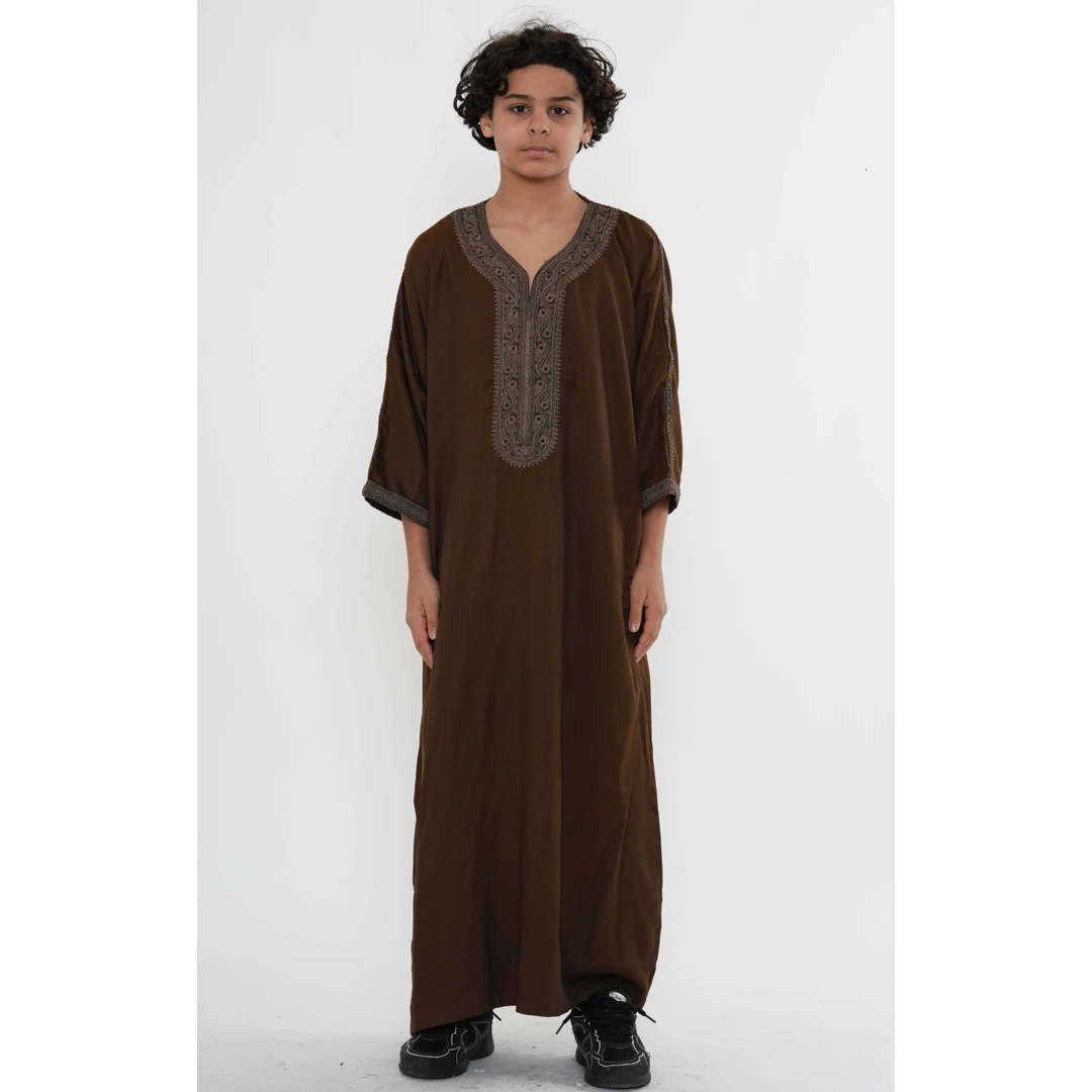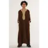 HM67 Brown Moroccan Boys Thobe Embroidered Kaftan
