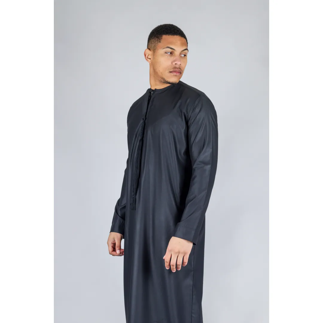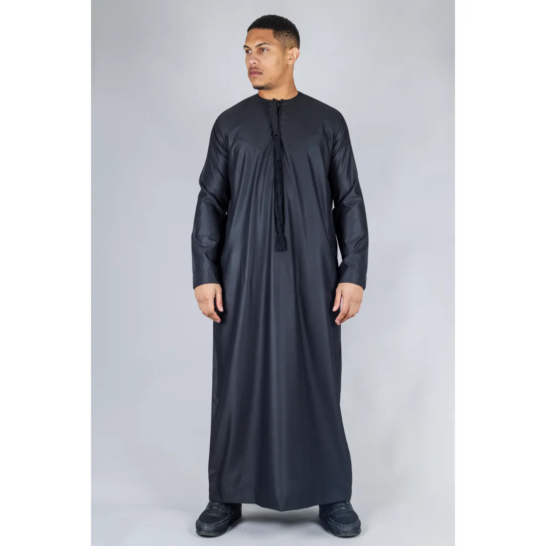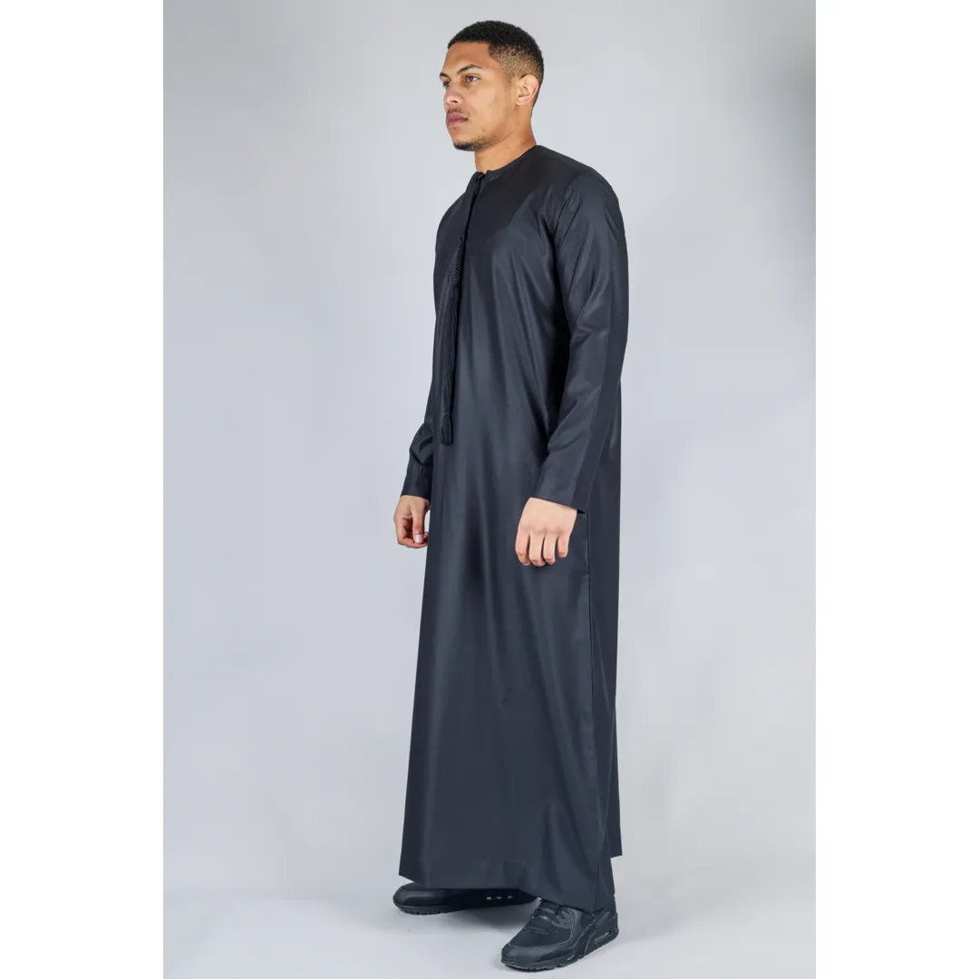 TT-001 Men’s Black Thobe Emirati Islamic Clothing String Tassel