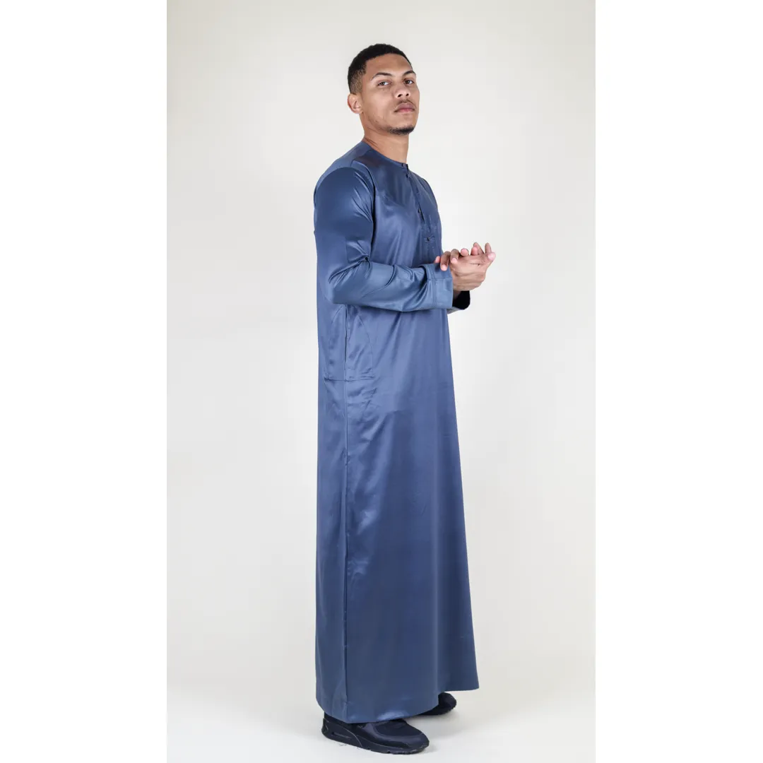 TT-002 Men’s Charcoal Satin Emirati Thobe Islamic Clothing