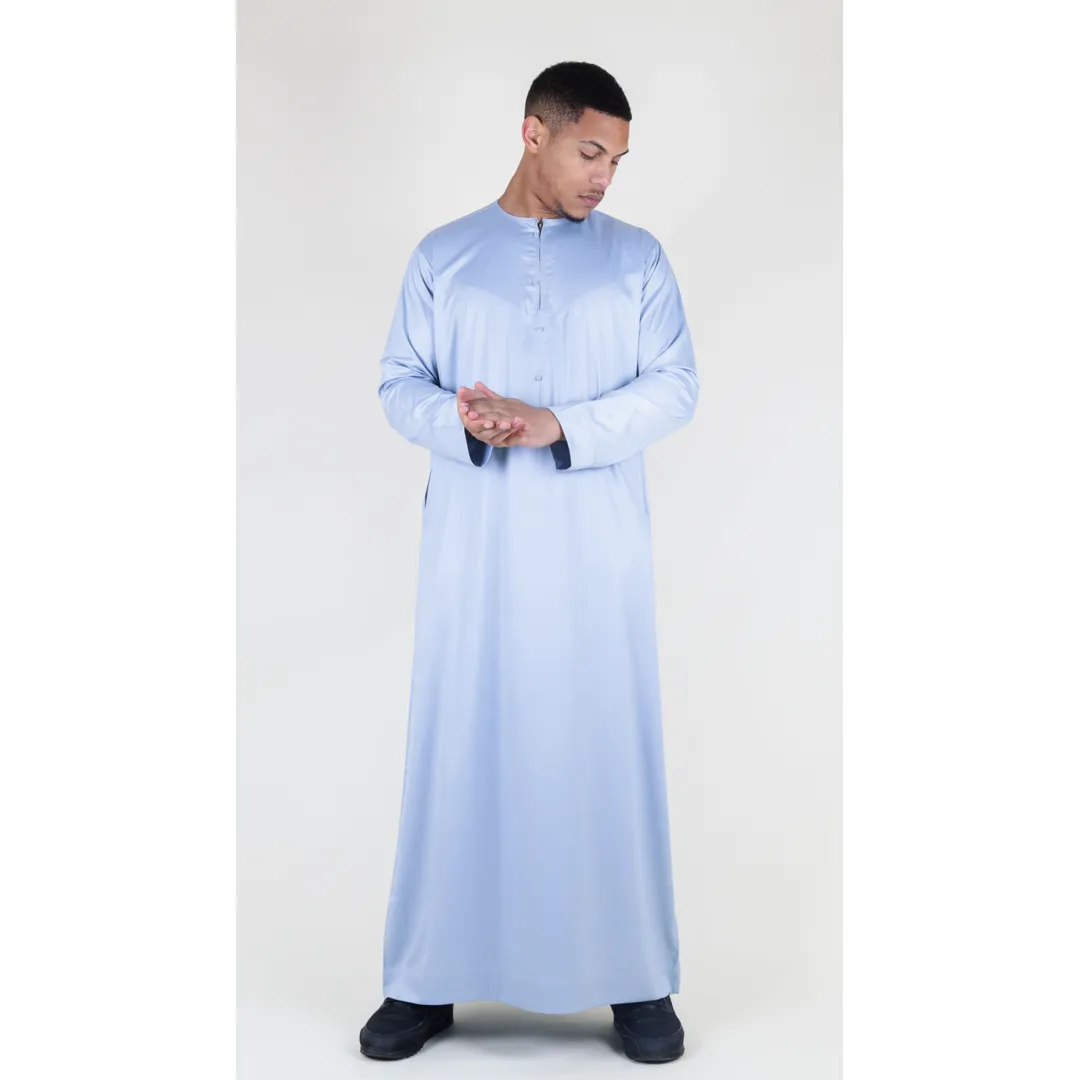 TT-002 Men’s Grey Satin Emirati Thobe Islamic Clothing