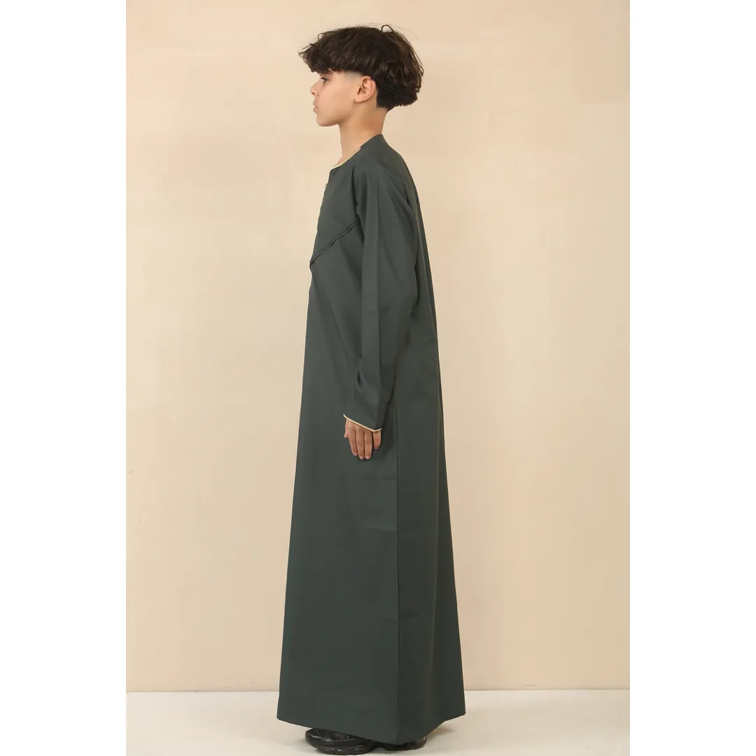 Perfect for religious ceremonies, Eid celebrations, formal events, and daily wear, this thobe’s adaptable design makes it a cornerstone of any young boy’s wardrobe.