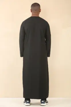 Two convenient side pockets provide practical storage without compromising the refined silhouette, making the thobe versatile for daily wear or more formal occasions.