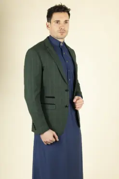Tailored for a sharp, modern look, this green checked blazer enhances your silhouette with a comfortable, high-quality fabric.