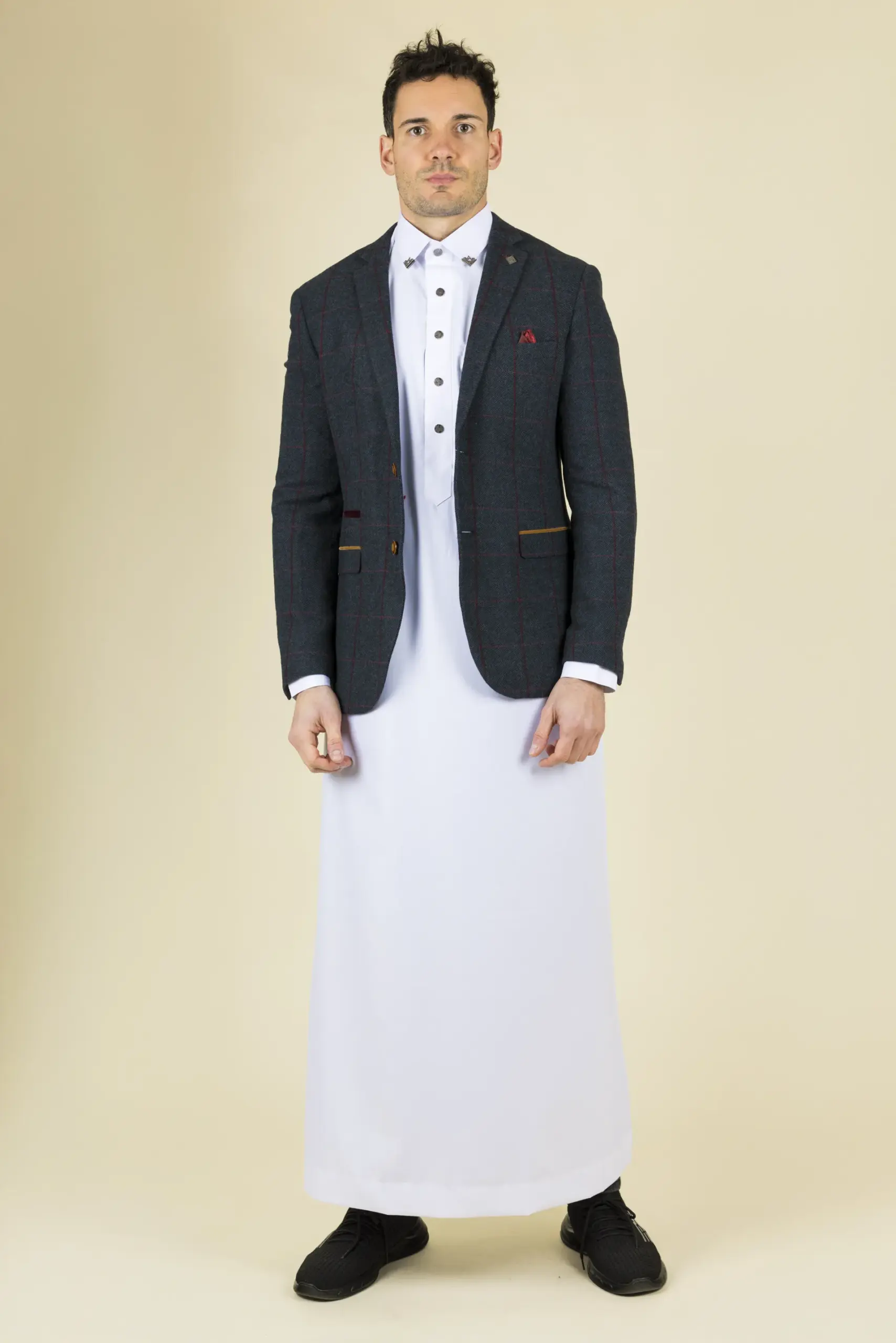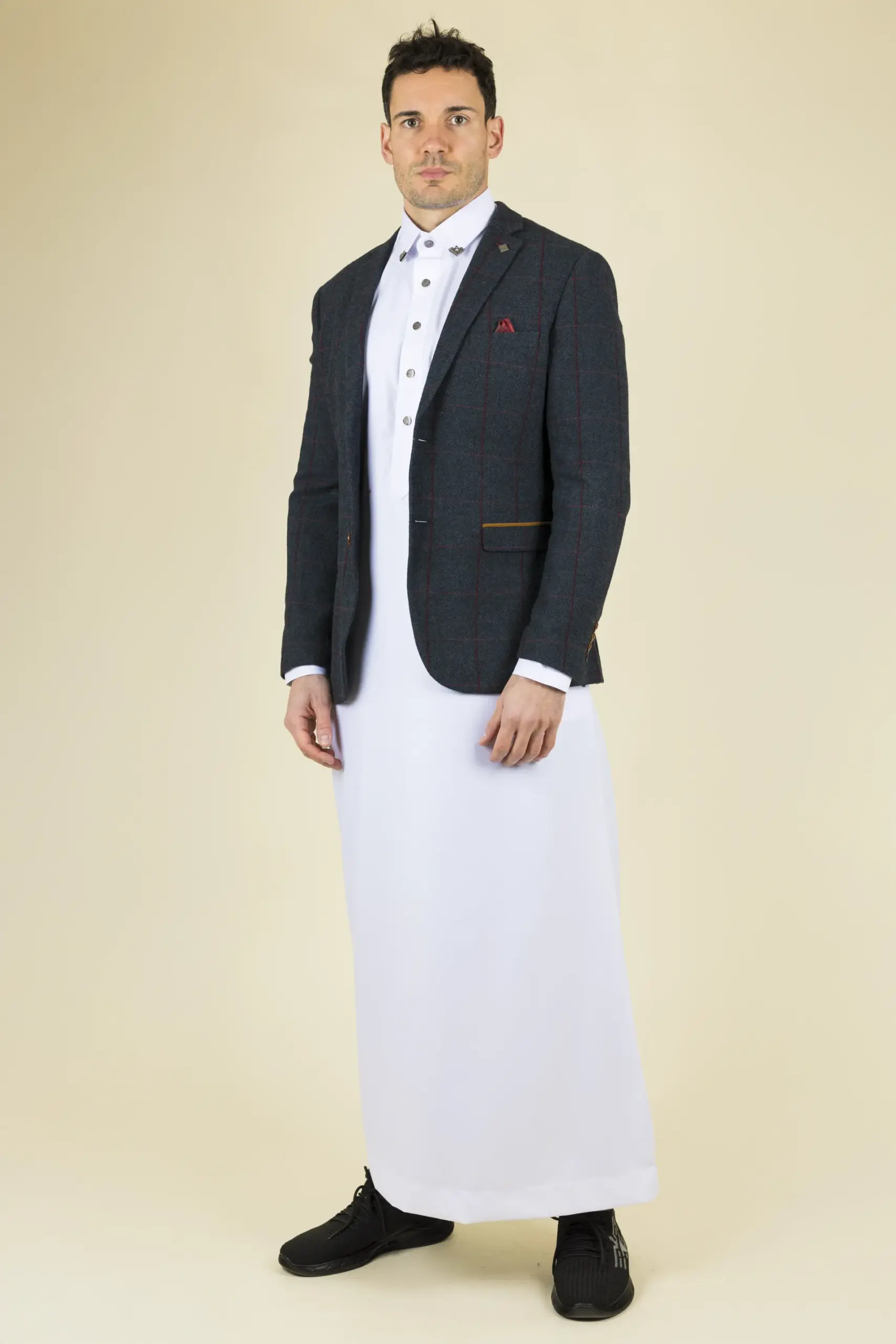 Elevate your style with the Madrid navy wince check blazer. Meticulously crafted for timeless elegance, it’s a versatile addition to your formal attire.