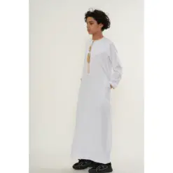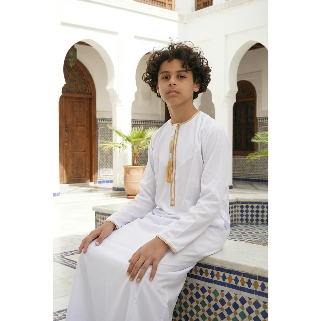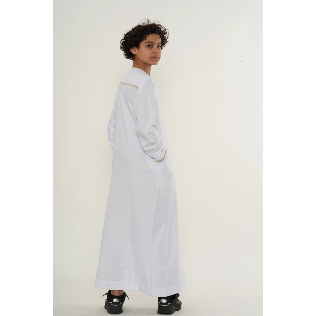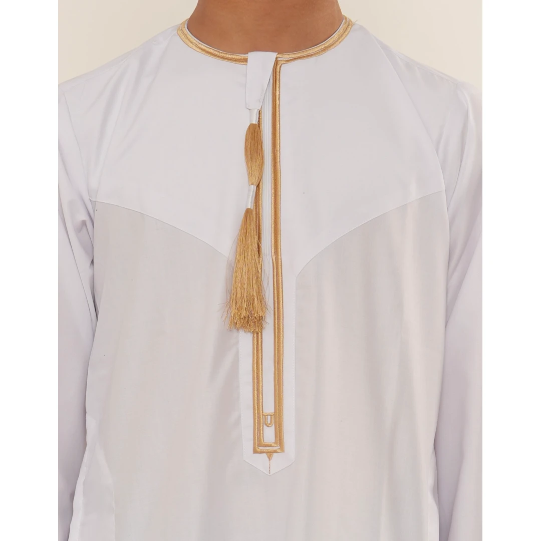 TT-003 Boy’s White Emirati Thobe with Gold Tassel Embroidery