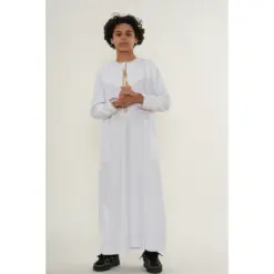 • Authentic Emirati & Omani design: Inspired by traditional Gulf attire, this boy’s thobe reflects cultural heritage with a refined silhouette suitable for religious and formal occasions