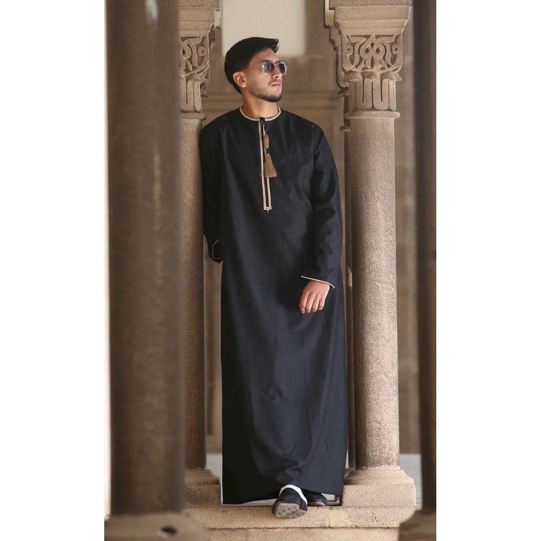 105 – Men’s Black Gold Omani Eid Tassel Thobe Jubba