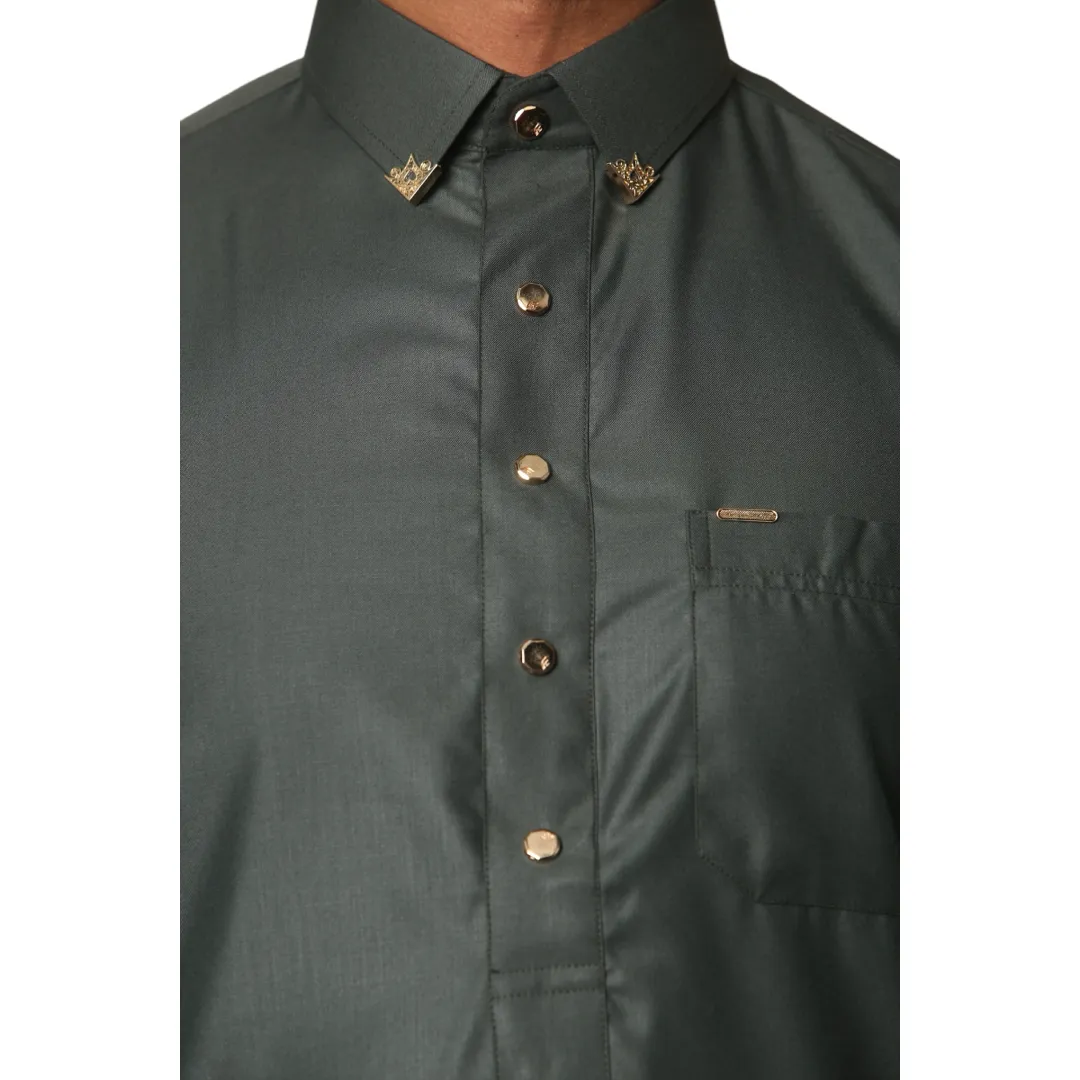 TT-004 – Men’s Olive Saudi Emirati Thobe Shirt Collar