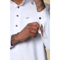 * Elegant Stud Button Closure: The front stud button closure enhances the garment’s ease of wear while adding a touch of elegance, making it suitable for both casual and formal settings