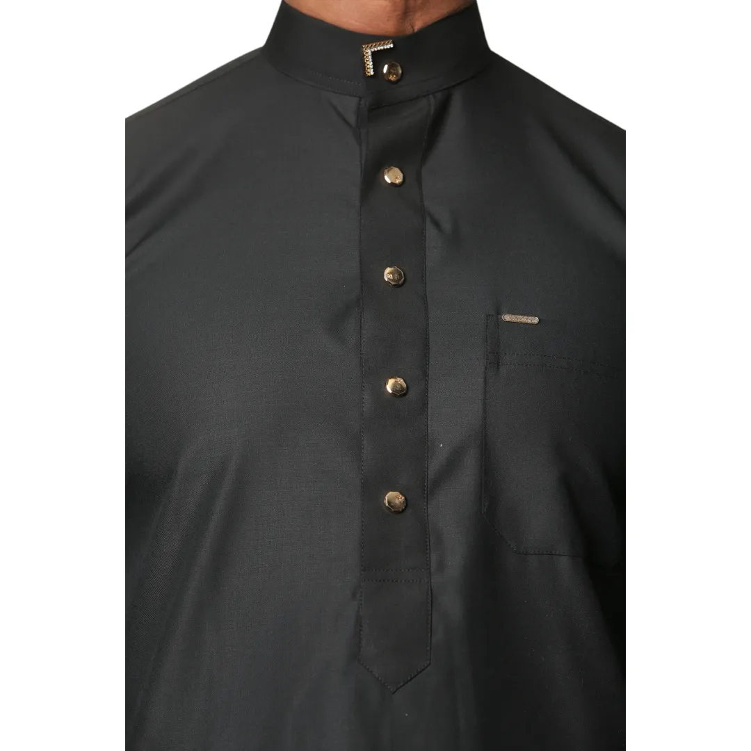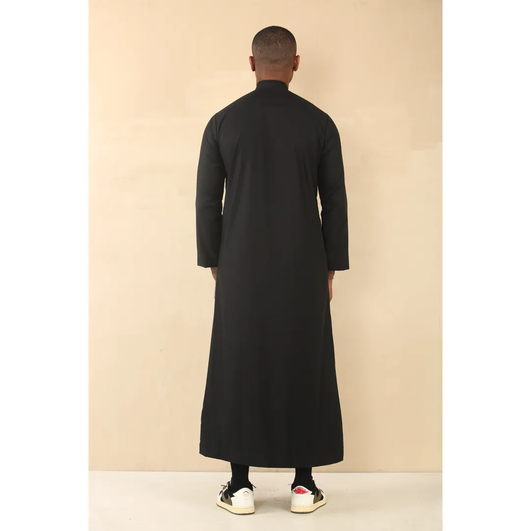 TT-005 – Men’s Black Saudi Emirati Thobe Nehru High Collar