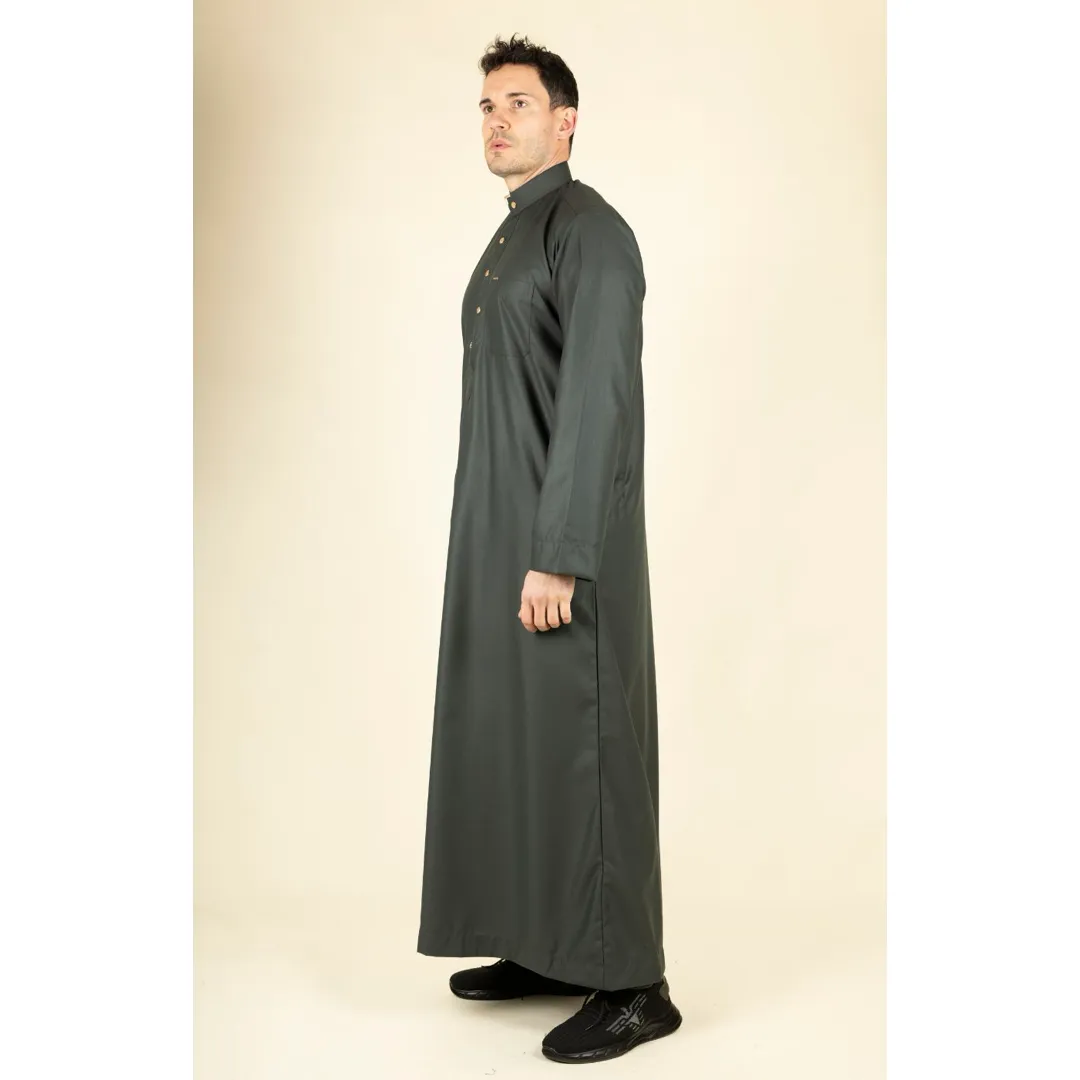 TT-005 – Men’s Olive Saudi Emirati Thobe Nehru High Collar