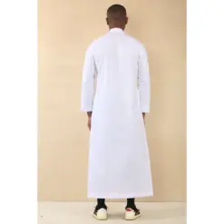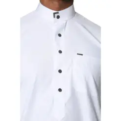 * Stand Collar Design: Features a high, stand collar for a sophisticated and modern appearance, perfect for formal or religious occasions