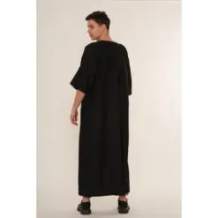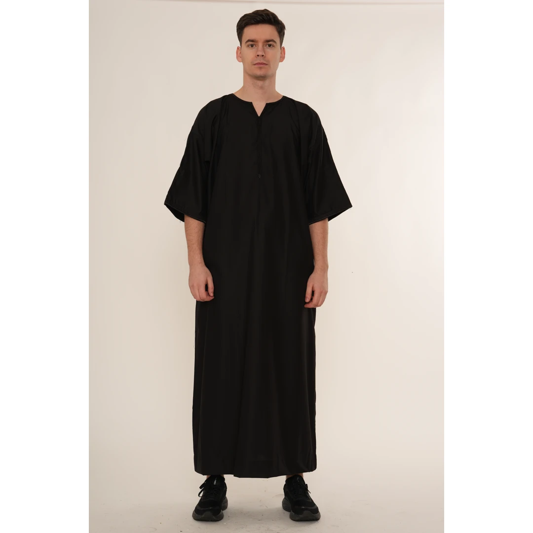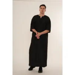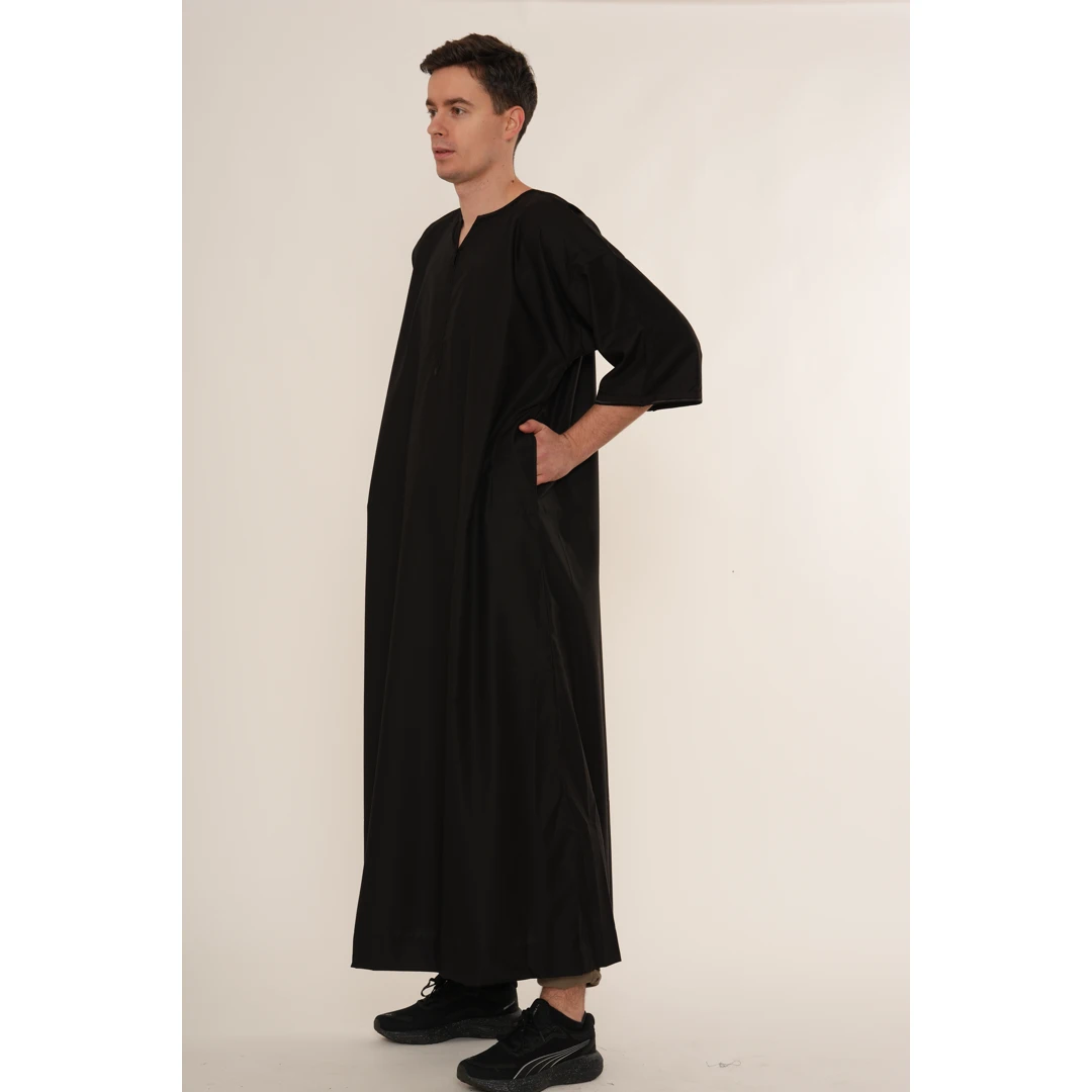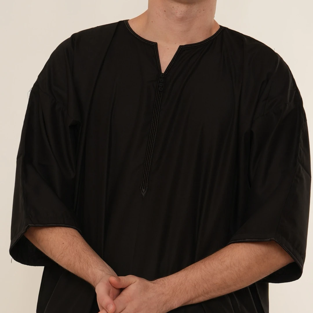 TT-006 Men’s Black Emirati Thobe with Chest Zipper