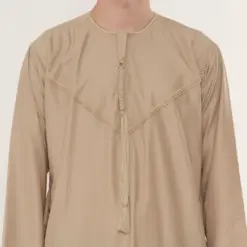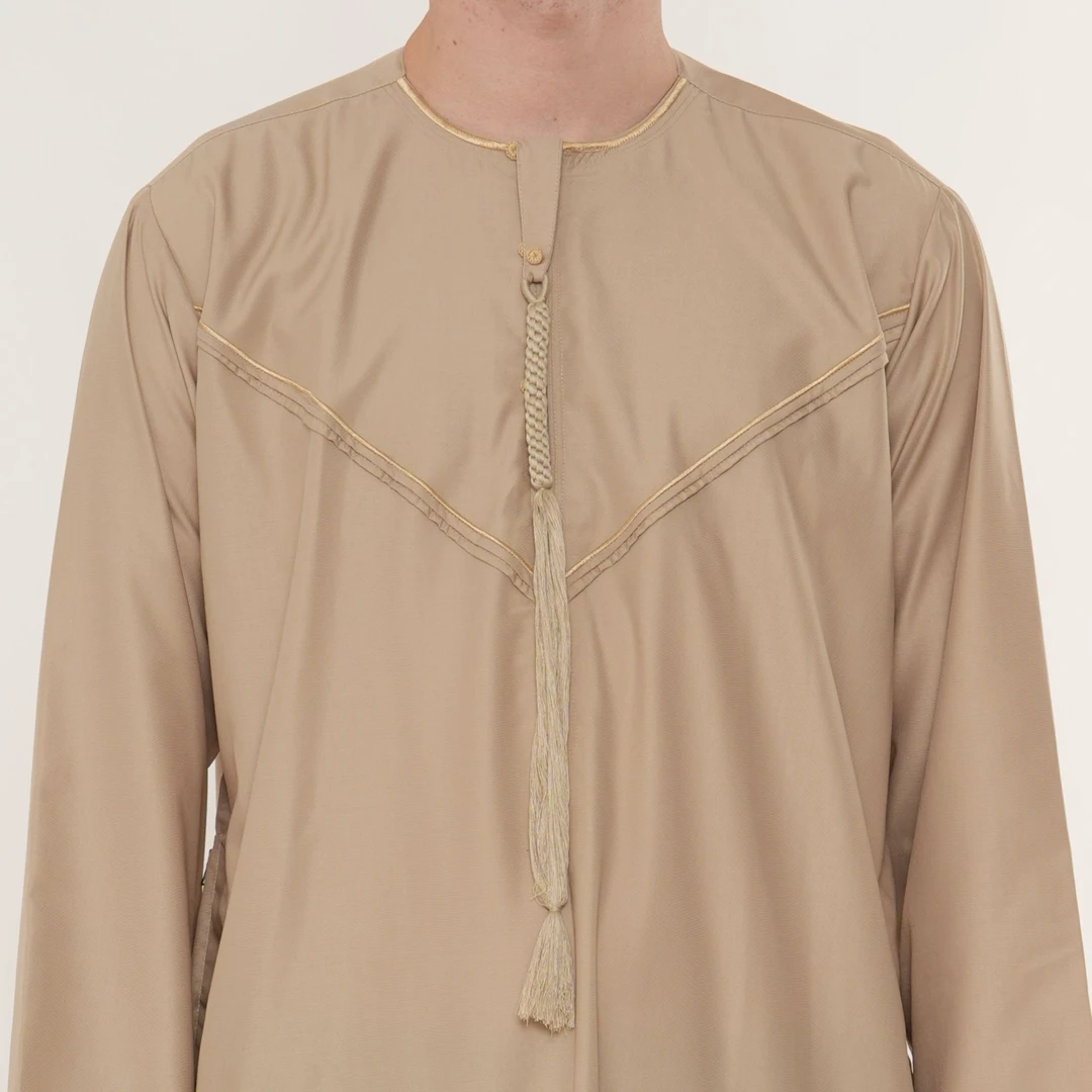 • Elegant Gold Embroidery: Features intricate gold stitching along the neckline and cuffs, adding a distinguished and refined appearance suitable for special occasions