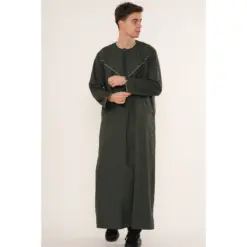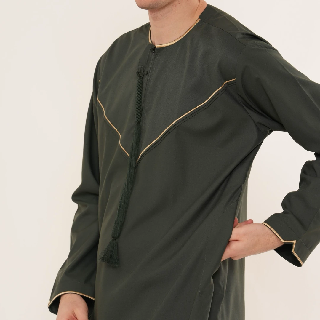 • Distinctive Color Choice: The rich olive tone pairs beautifully with gold accents, offering a stylish yet respectful appearance suitable for Muslim traditions