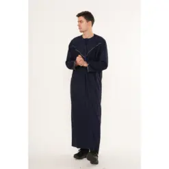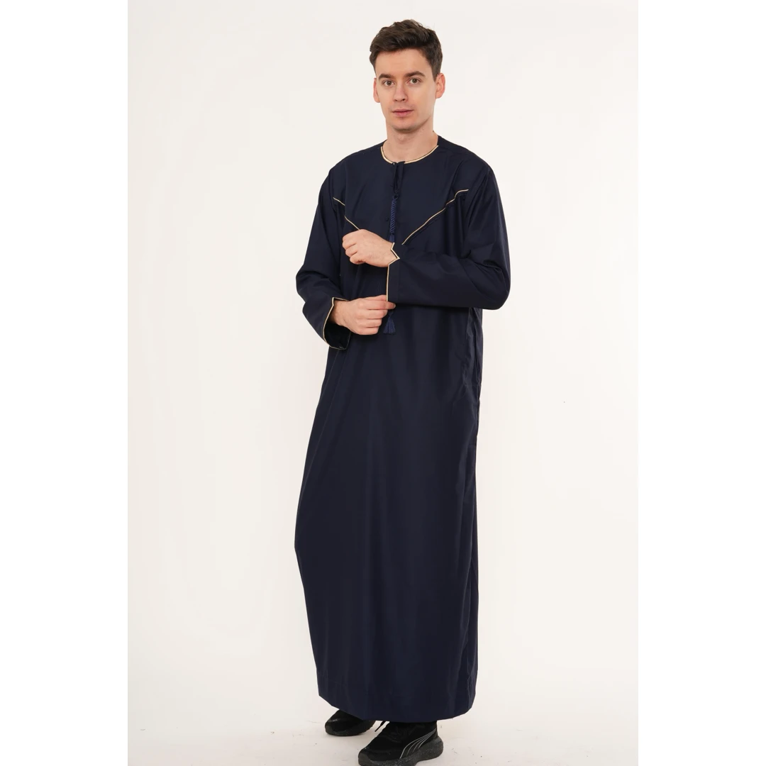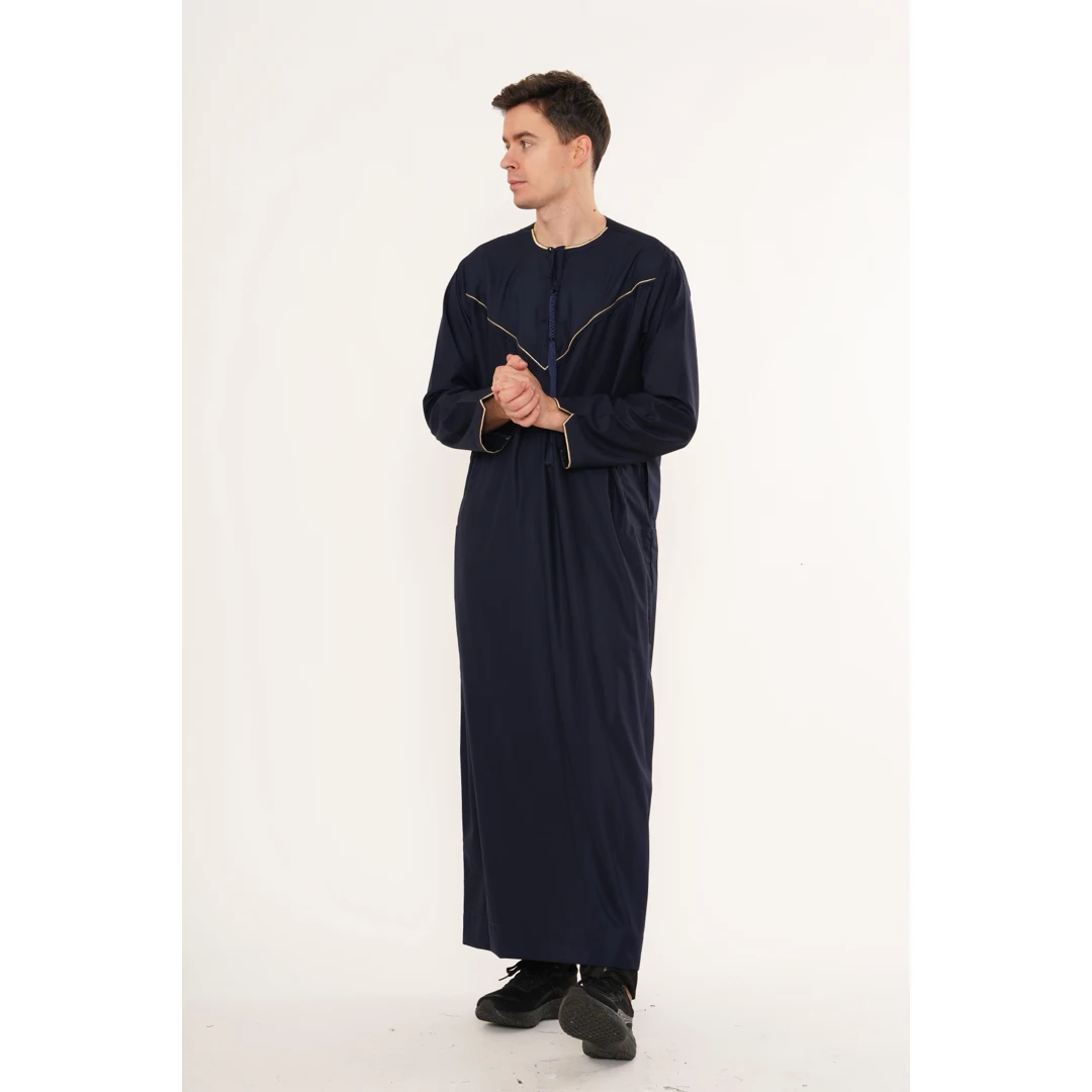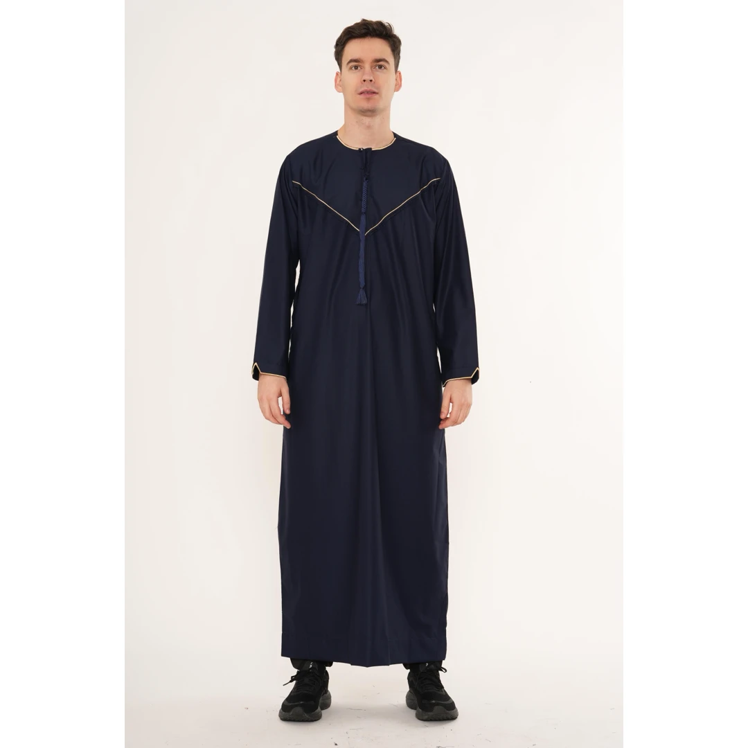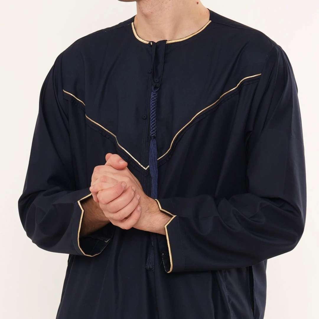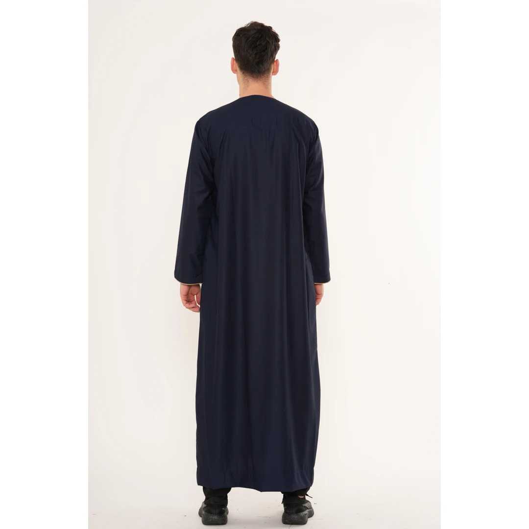 TT-007 Men’s Navy Emirati Thobe with Gold Embroidery